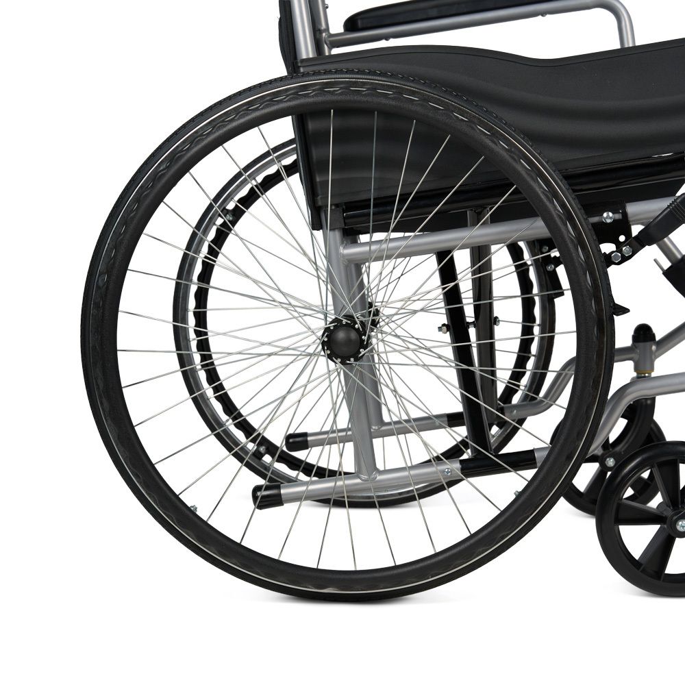 Базовое кресло-коляска со складной рамой, регулируемыми подножками и пневматическими задними колёсами. Для дополнительного комфорта коляска оснащена опорой для голеней и мягкими накладками на подлокотниках. Модель оптимально подходит для передвижения в помещении, когда не требуется дополнительная фиксация и защита пользователя.